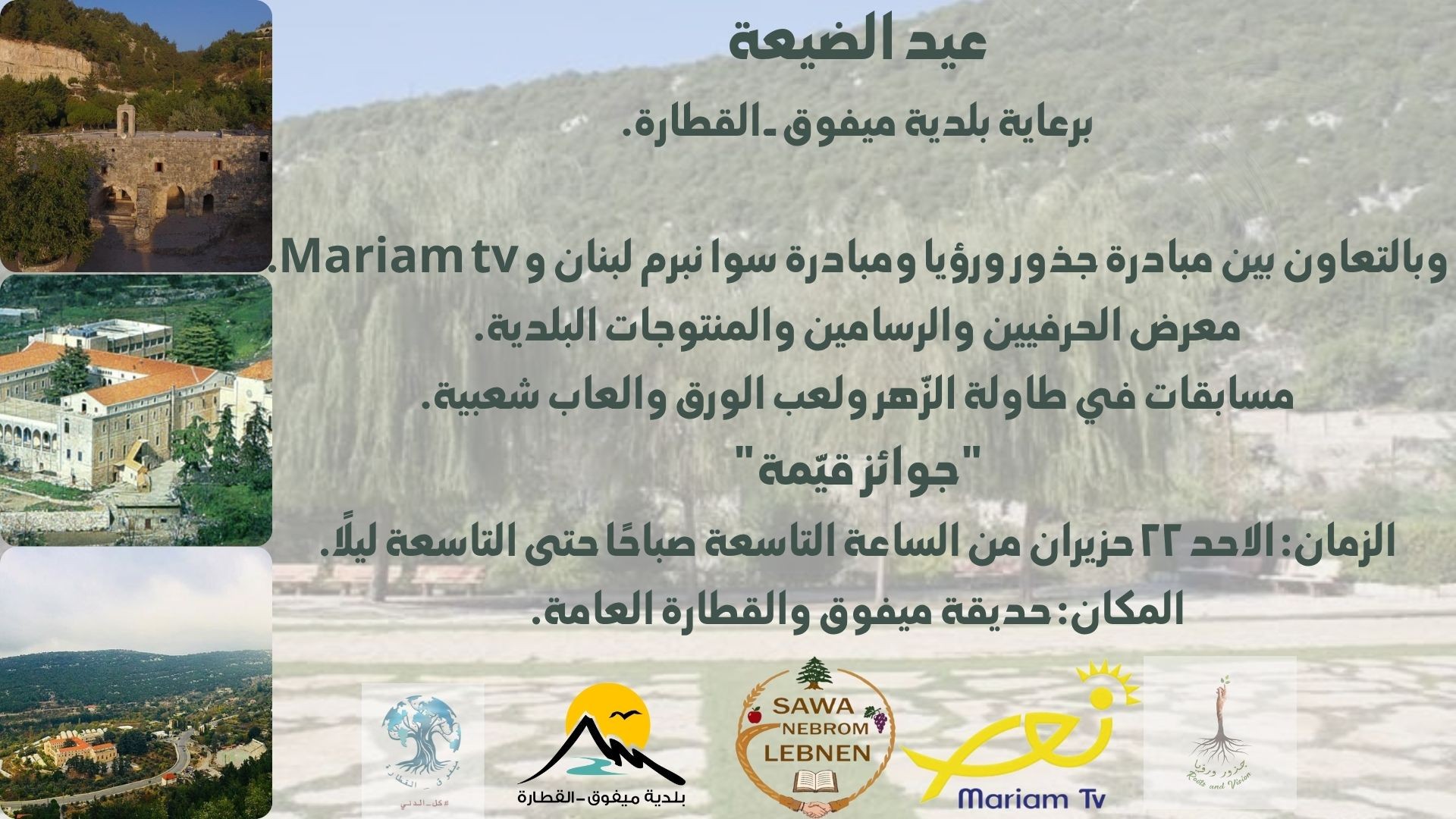 تدعوكم مبادرة جذور ورؤيا بالتعاون مع مبادرة سوا نبرم لبنان و Mariam tv الى:
